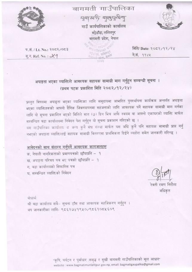 अपाङ्गता भएका व्यक्तिले आवश्यक सहायक सामाग्री माग गर्नुहुन सम्बन्धी सूचना