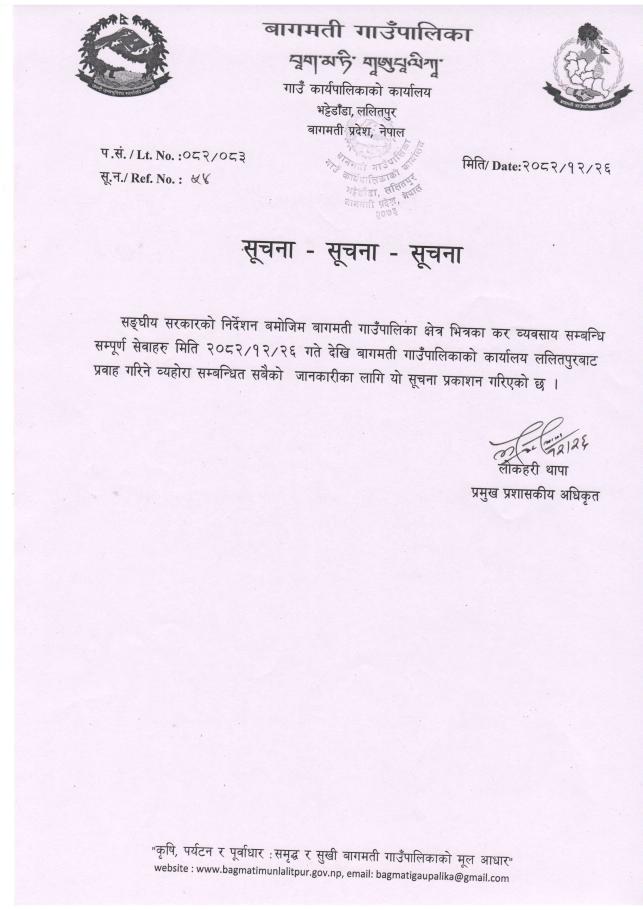 कर सेवा सञ्चालन सम्बन्धी सूचना ।
