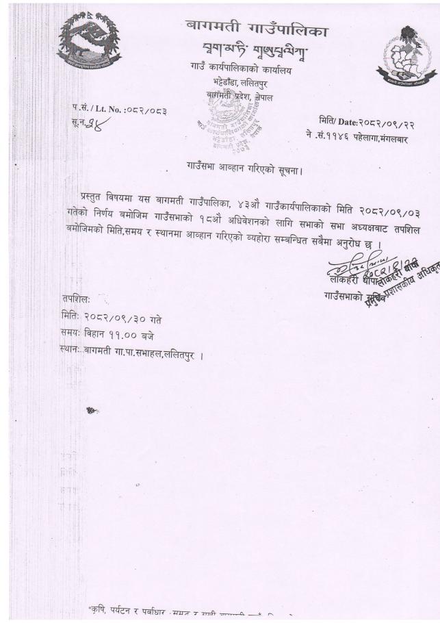 बागमती गाउँपालिका भित्रका स्थानीय कृषक/ कृषक समूह/ सहकारी संस्था/ व्यवसायिक पशुपालक फार्महरुमा प्रस्ताव आव्हानको सूचना