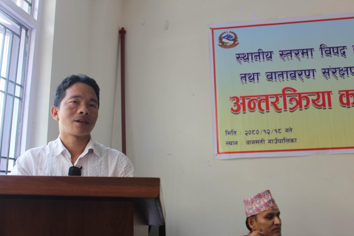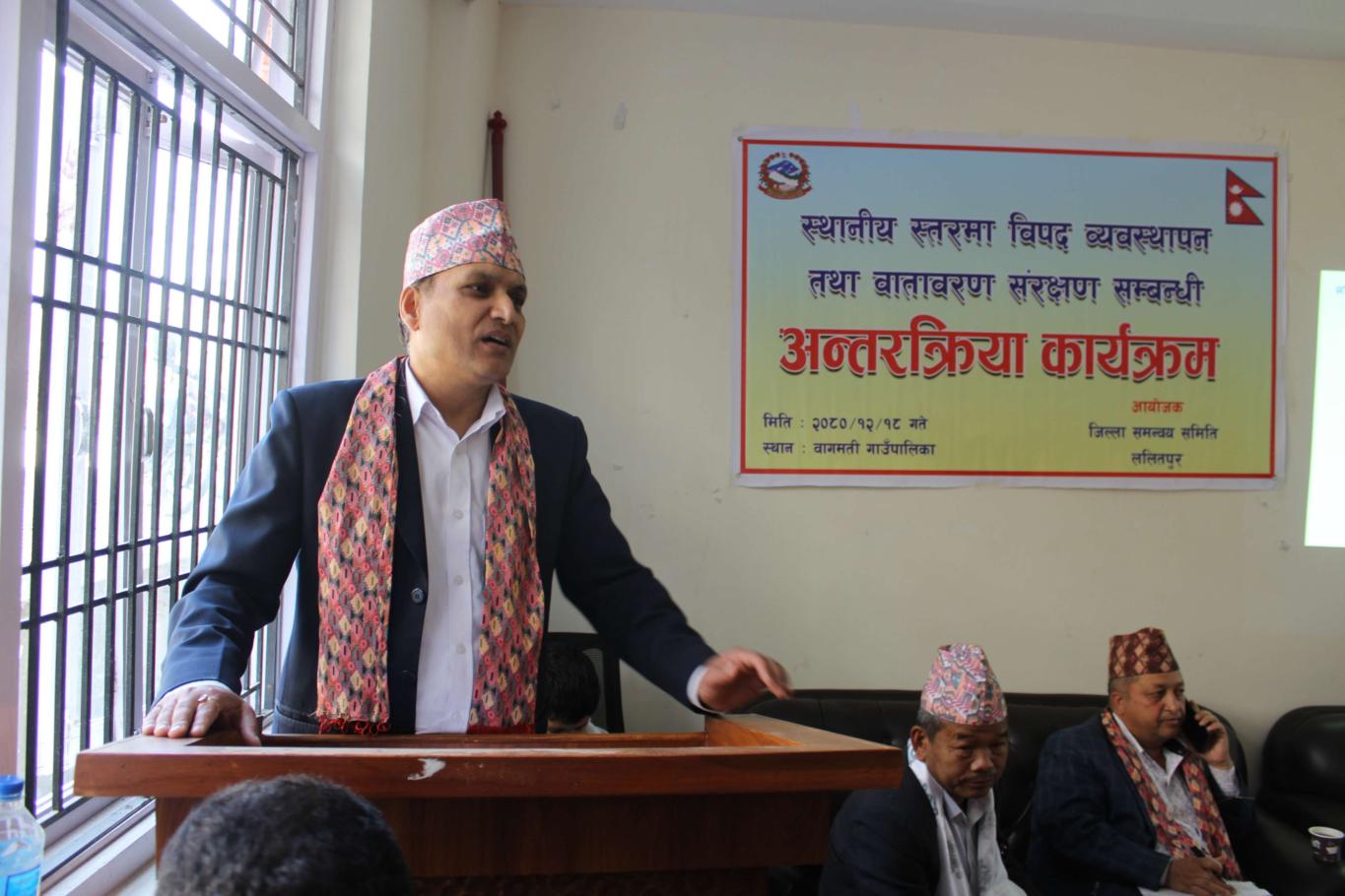 बागमती गाउँपालिका गाउँ कार्यपालिकाको कार्यालयमा जिल्ला समन्वय समितिको कार्यालय ललितपुरको आयोजनामा सम्पन्न गरिएको स्थानीय स्तरमा विपद् व्यवस्थापन तथा वातावरण संरक्षण सम्बन्धी अन्तरक्रिया कार्यक्रम २०८०-१२-१८