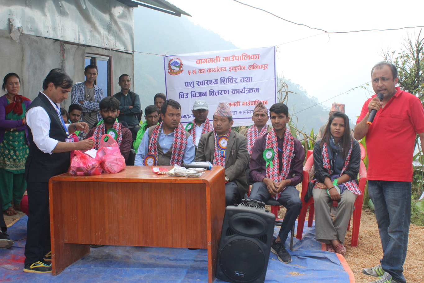 बागमती गाउँपालिका वडा ५, इकुडाेलमा वडा कार्यालयकाे अायाेजनामा मिति २०७५/०६/१४ गते पशु स्वास्थ्य शिविर एवं विउ विजन वितरण कार्यक्रम गाउँपालिका अध्यक्ष विर बहादुर लाेप्चनकाे प्रमुख अातिथ्यता र ५ नं. वडा अध्यक्ष साजन दर्लामीकाे अध्यक्षतामा सम्पन्न भयाे । वडा प्रतिनिधिहरू, गाउँपालिका कर्मचारीहरू, प्राविधिक सहयाेगीहरू उपस्थित साे कार्यक्रमबाट इकुडाेलका ३०० कृषकहरू लाभान्वित भए । साे कार्यक्रम सँगै जनजागृती मा.वि. एवं वडा स्वस्थ्य चाैकी पनि निरिक्षण भयाे ।