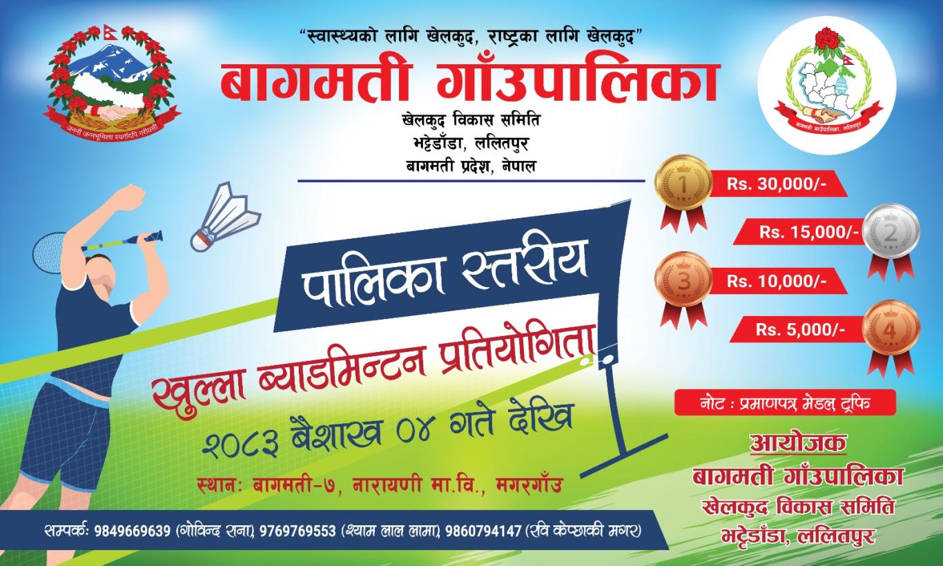 » पालिका स्तरीय खुल्ला ब्याडमिन्टन प्रतियोगिता सम्बन्धी सूचना ।