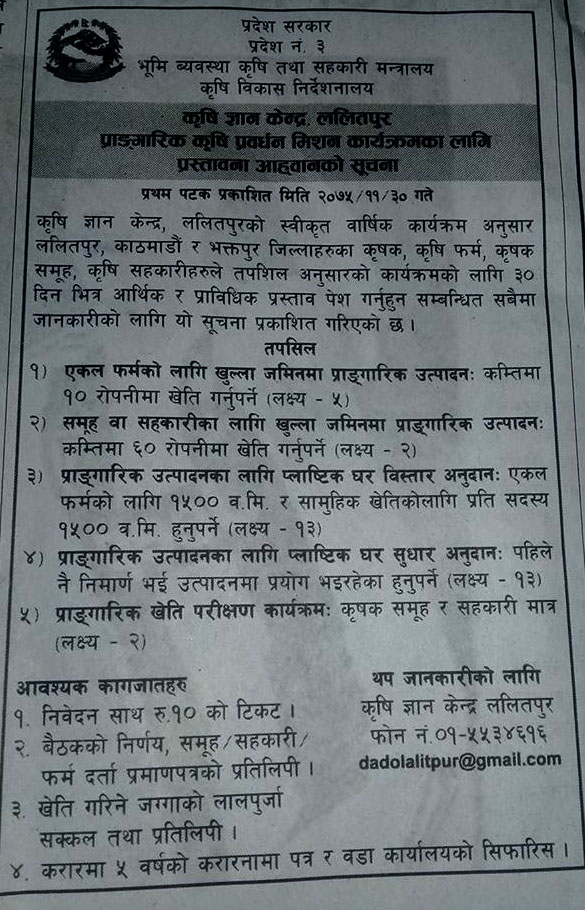 लसुन प्याज मिसन कार्यक्रममा प्रस्ताव पेश गर्ने सम्बन्धी सूचना
