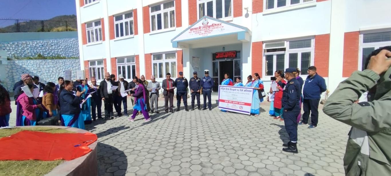 प्रविधिको सही प्रयोग गरौँ : लैंगिक हिंसा अन्त्य गरौँ” भन्ने राष्ट्रिय नाराका साथ २०८२ मंसिर ९ गते देखि २४ गते सम्म सञ्चालन हुने लैंगिक हिंसा विरुद्धको १६ दिने अभियान अन्तर्गत यस बागमती गाउँपालिकाले मिति २०८२ मंसिर ९ गते आयोजना गरेको प्रभातफेरी कार्यक्रम