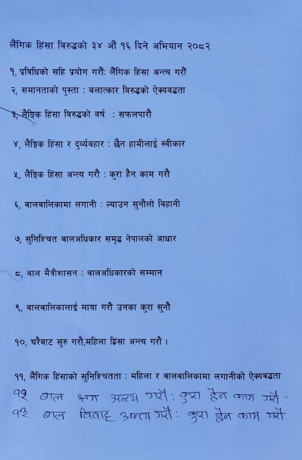 लैंगिक हिंसा विरुद्धको १६ दिने अभियान