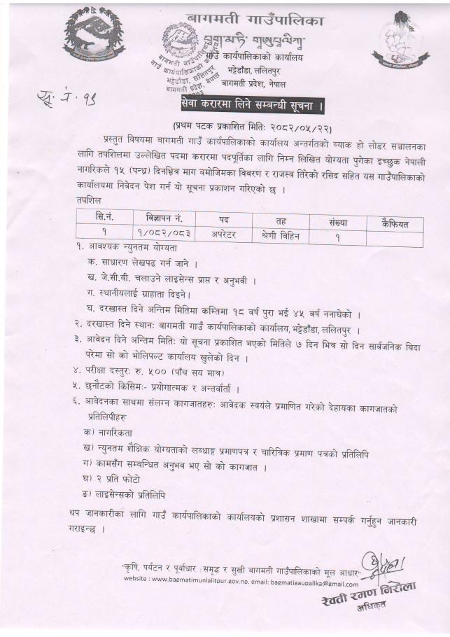 सेवा करारमा लिने सम्बन्धी सूचना